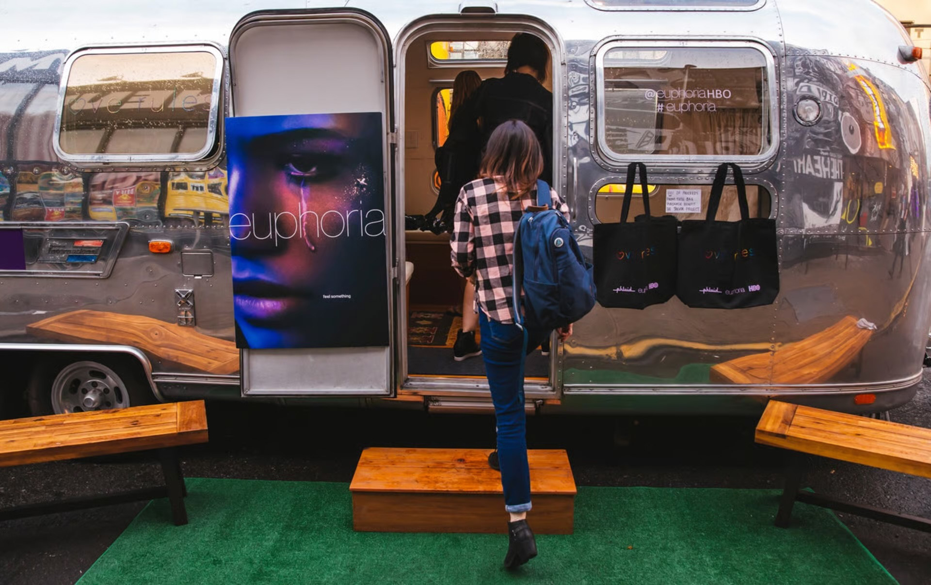 The experience launched with gender-expansive training to ensure alignment and safety across every touchpoint, before opening Euphoria Village, a touring pop-up environment anchored by a custom Airstream retail space. The activation combined exclusive merchandise, food and beverage programming, episode screenings, and live conversations with cast members, creating a fully immersive ecosystem that blended entertainment, retail, and education into a cohesive brand moment.